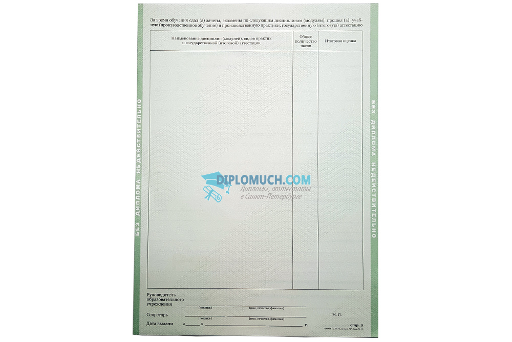 Диплом о начальном профессиональном образовании 2011-2013 года